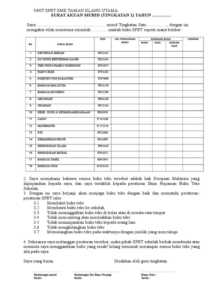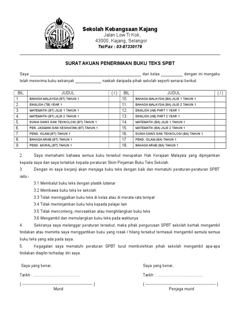Surat Akujanji Pinjaman Buku Teks T1 T6 Pdf